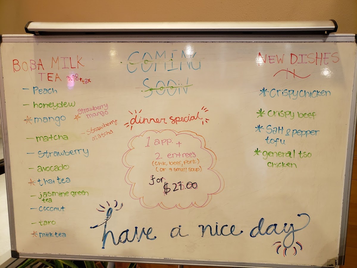 Sauteed green onions, eggs, and vegetables wrapped in a Chinese style crepe and served with plum sauce.