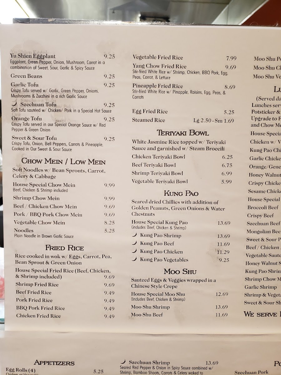 Includes beef, chicken, and shrimp. Sauteed green onions, eggs, and vegetables wrapped in a Chinese style crepe and served with plum sauce.